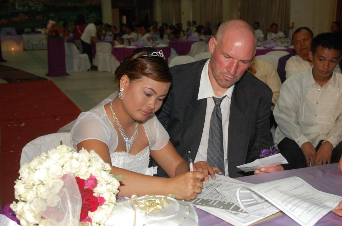 Ende November bin ich dann auf die Philippinnen geflogen und wir haben uns am Flughafen in Manila getroffen und uns umarmt und geküsst. Ein viertel Jahr später, Anfang April, habe ich 4 Wochen Urlaub genommen und ich flog wieder auf die Philippinnen, und wir haben in der zweiten Woche in Tagum geheiratet.